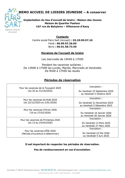 Pour avoir accès à votre espace famille, il faut déposer un dossier d’inscription ou de réinscription à l’Accueil du Centre Social Flers Sart.